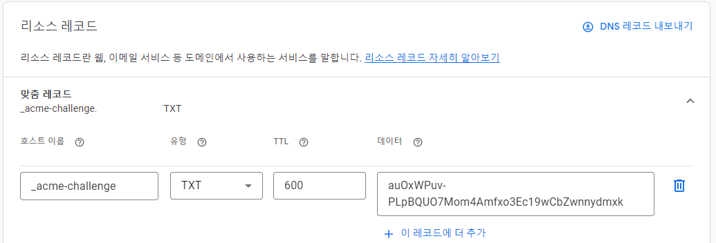 도메인 DNS 리소스 레코드에 아래와 같이 입력하고 저장한다.