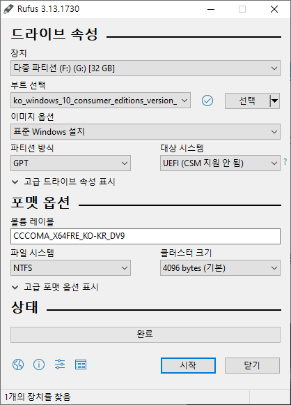 2. ISO 파일을 USB에 굽는다. (https://rufus.ie/ko/)